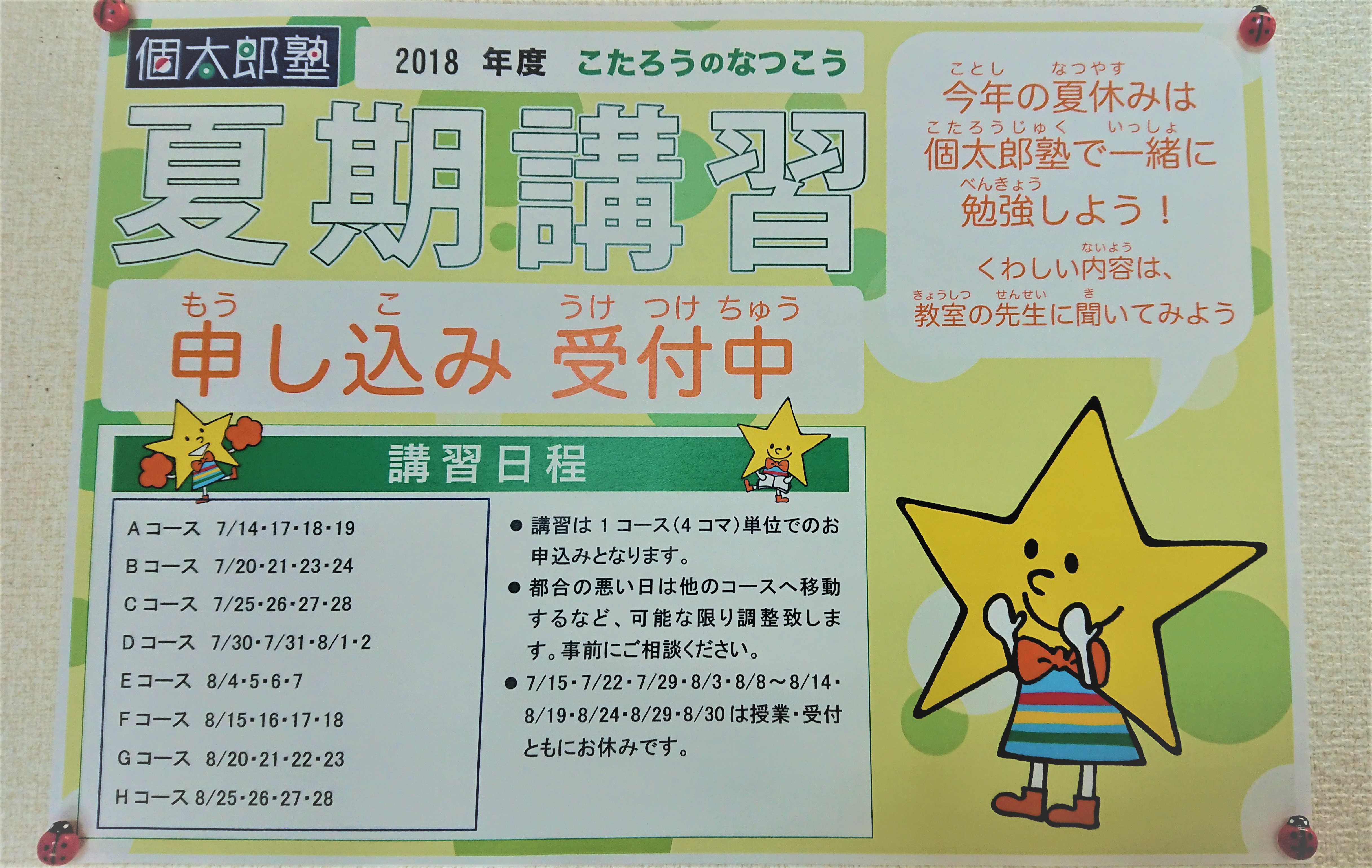 塾長のひとこと2018.06.012019.04.11夏期講習の受付 ポスト シェア はてブ 送る Pocket 2018年6月1日(金) 梅雨の季節がやってきました。。 しかし、暑い日が続きますねー。 東陽町教室では、夏期講習の受付始めました。 早いと思われる方、、夏まであっという間ですよ。。 早めに計画を練っていきましょう!!お気軽にご相談ください!!